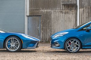 Of course, the other stark reality is that the supercar was designed and developed in North America while the hot hatch hails from Ford’s R&D centre at Lommel in Belgium, so it is very possible that the personnel overlap between the two projects was precisely none at all. But they are still siblings, or first cousins at the very least, and when you drive the two back-to-back, you do pick up on a number of similarities.