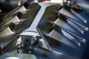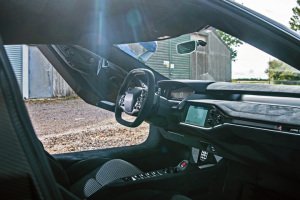 The big rear spoiler drops so quickly from view as you slow down to urban speeds, and with such a loud thwack, that you swear every time it has just fallen off. You sit so close to the centre of the car’s cabin that, with a passenger alongside you, your shoulders are in constant contact. You also have to remind yourself that over your other shoulder there is at least another foot of bodywork. The seat itself is fixed so you tug the pedal box towards you or kick it away with your feet, adjusting the steering column for reach to get your driving position just so. The floating upper section of the dashboard brilliantly mimics the exterior aero tunnels that are this car’s signature design feature, adding to the very real impression that air doesn’t flow over the top of this car or underneath it, but that it passes directly through it.