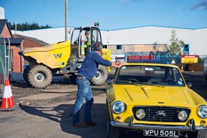 But we’re off to Ebbw Vale. Morgan’s Invader is running like a dream. There was a bit of grief with the clutch but Morgan carries a mighty toolkit in the car and topped up the clutch master cylinder with fluid and all was well. The car is surprisingly brisk and the ride supple.