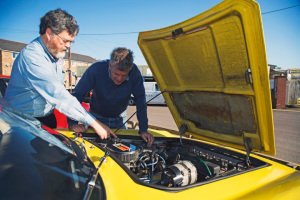 But what about the butcher? Giles Smith, Church Village butcher, fancied one of the fibreglass-bodied specials that were popular in the 1950s. Smith had a chance meeting with a bloke called Bernard Friese, who’d been a PoW in England and had decided to stay rather than return to his native East Germany, which was now controlled by the Russians. Friese had worked for a coachbuilder and was experienced in glassfibre. He put Smith off the idea of building any of the current specials and between them they decided to build their own one-off. It turned out to be so good that the pair thought it would be a wasted opportunity to build only one. The first part of each of their first names was used to create ‘Gilbern’. The initial three or four cars were built out the back of the butcher’s shop in an outbuilding that had been the abattoir.