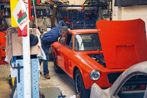 Lyons is in the process of moving stuff to the next-door unit. This big space is where Gilbern’s paintshop lived. We park Morgan’s car inside a building that it hasn’t seen inside for 46 years. I love industrial archeology, especially if it involves car or aircraft factories. The old Gilbern works is still very much a part of the community here. If you google ‘Gilbern and Llantwit Fardre’ you’ll find a brilliant project on the car company done by Llanilltud Faerdref primary school. The kids have assembled all of the production numbers, year by year, for all of the Gilbern models. It’s extremely impressive.