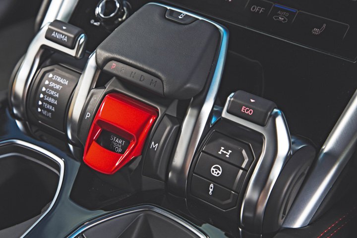 There’s no doubting the Urus has presence, but to my eyes the detail styling is overwrought, particularly around the fussy front end, and the slightly contrived coupé roofline just doesn’t look right. Meanwhile, the cabin is spacious – although the rear seats might be a little claustrophobic for really tall passengers – and the quality throughout is very good indeed. It’s a pity, though, that anybody at all familiar with other premium Volkswagen Group products could pick out component after component that is shared across the group. Lamborghini has at least tried to give the cockpit a bespoke feel with the drive mode and gear selector mechanisms, but I’ll leave you to decide how tasteful you think they are.