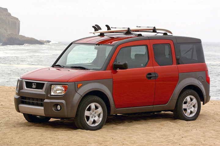 The Honda Element’s boxy, plastic-clad body hid underpinnings shared with the CR-V. Built in Ohio, the Element existed at the intersection of the van, station wagon and SUV segments. It offered rugged looks, a spacious interior and available all-wheel drive.
