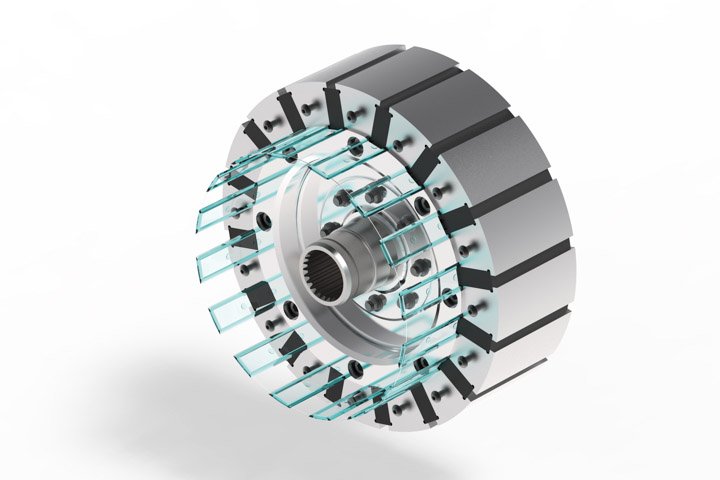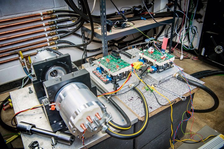 Equipmake’s pride and joy is a highly flexible design it calls the spoke motor, an interior permanent magnet electric machine in which the magnets are arranged radially, like the spokes of a wheel. This gives the motor the greatest torque density going, Foley says, and Equipmake’s version permits more efficient liquid cooling than previous spoke designs, highly desirable because well-cooled magnet motors can run faster and deliver higher power for longer.