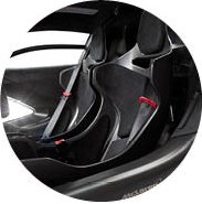 Weighing 8kg, the carbonfibre seat is the lightest yet produced by McLaren. Rather than clad the entire 3.3kg seat shell in padding, to save weight the engineers carried out pressure mapping to work out where the contact points between body and seat are, and then padded only those sections with Alcantara. Further structural analysis enabled the development team to determine where they could cut out unneeded sections of seat shell to further reduce weight.