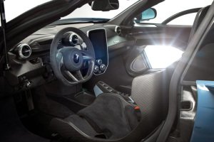 “The focus is solely on the driver’s ability to do an incredibly quick lap time,” says Andy Palmer, vehicle line chief for Ultimate Series cars, about the spartan interior. “We’ve decluttered the interior, putting controls such as window switches, lights and door handles into the overhead console, where they are accessible but aren’t going to distract from the sole purpose.”