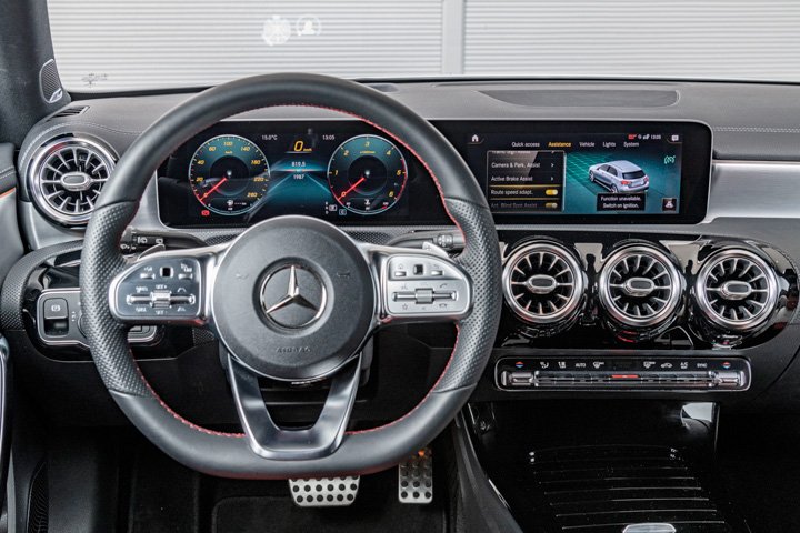 It’s called MBUX – short for the Mercedes-Benz User Experience – and comprises all the semi-autonomous driving functions so far seen on the E-Class and S-Class, including the ability to overtake and regain your original lane on the motorway with no more than a press of an indicator stalk. But this is merely the start: it can also be specced with ‘augmented reality’ nav that uses cameras to show you the street ahead and then overlays graphics showing you, in the most literal sense, which way to turn. It works fantastically well.