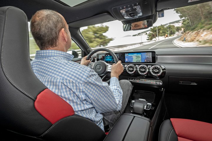 And now a word of caution. As journalists, we can only review the cars we test and in the spec in which they are supplied and, as is so often the case with new car launches, Mercedes chose to provide only the most luxuriously appointed A-Classes, all laden with myriad options, some of which, like the driver assistance systems, won’t be available in the UK until September. The less irksome consequence of this decision is that I have no idea what the interior ambience of an entry-level car might be, with two smaller TFT screens in place of the impressively monstrous items on the cars we tested.
