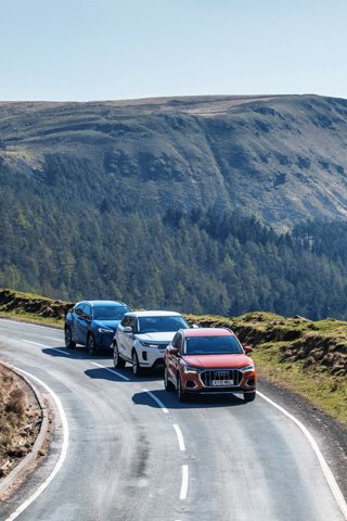 The XC40 is slightly lighter, keener and more agile than the Evoque in how it tackles sharper corners. Its ride is noisier, though, and its vertical body control is less progressive and sophisticated than the Evoque’s, making a fuss over choppy surfaces that the Land Rover’s suspension simply smothers. The Q3 is a touch crisper and keener-handling than the Evoque, too, and it has the assured outright grip levels and lateral body control you expect of an Audi. It has a less settled, less absorbent ride than the Land Rover, though, and it steers with a sense of filtered, distant aloofness and little reassuring weight or feel, so it’s harder to place and less satisfying and fluent as a result.