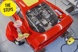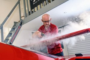 I like the sound of it being mindless-vandal-proof, and to prove the point, Jules grabs an offcut piece of Kevlar, scores it and then applies some heat with the steamer. Like magic, the score marks fade away. Good enough, then, for a Ferrari F40 and it is time to find out how Jules gets started.