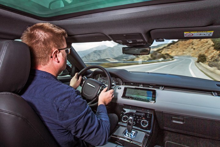 All Evoque derivatives bar the aforementioned very cheapest D150 also get a clutch-based torque-vectoring four-wheel-drive system and a nine-speed automatic gearbox, as well as a redesigned all-independent suspension system of struts up front and JLR’s Integral Link set-up at the rear. Adaptive dampers are optional (although they weren’t fitted to our test car).
