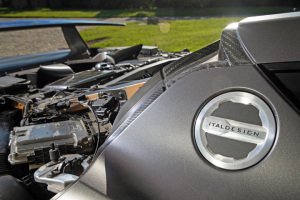 The front end presents a racer’s thrusting extended floor, above it a more subtle air intake deliberately redolent of single-seater race cars of the 1960s – the cooling air jetting from this slot via a pair of openings further up the bonnet. This Y-shaped channelling presses the Zerouno into the ground at speed, as do the titanium diffuser and carbon sill extensions.
