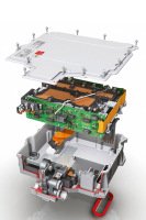 EV electric machines need some complex electronics to control them. These come in the form of a power electronics module (PEM), like this Audi one, and an inverter, which can be integral with the PEM or the motor itself. Inverters provide the interface between an alternating current electric machine and the direct current battery.