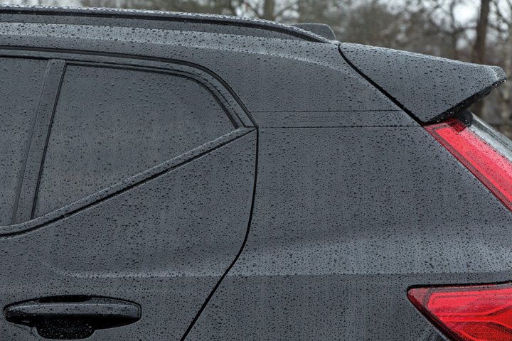 A good thing about small rear windows with spoilers above them: they don’t get dirty so easily. A bad thing: you can’t see out of them.