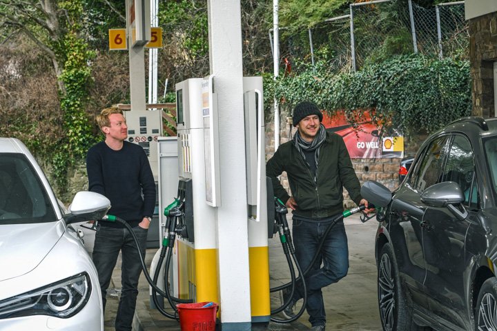 If the battle of engine and chassis is won by the newcomer, it is Porsche that has delivered the better brakes and gearbox. Both cars use a dual-clutch transmission (eight speeds for the Stelvio, seven for the Macan), and although the process of swapping cogs is sumptuously smooth whichever car you’re in, they’re whipcrack fast in the Macan. That car’s brakes also bite higher and more cleanly and inspire greater confidence through their firmer action. Were you only able to lean more committedly on the Porsche’s front axle as you can in the Alfa…