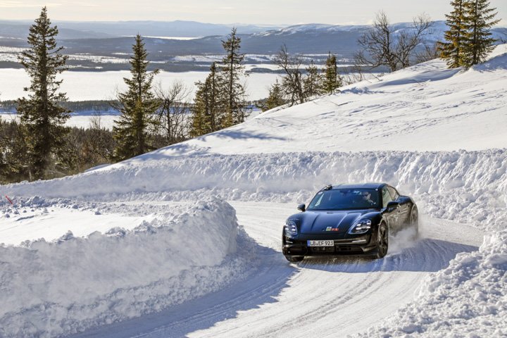 So what do you want to do now? We could go and do some doughnuts,” says the chassis engineer with ill-disguised hope in his voice. Out here in the frozen wastes of northern Sweden, it seems almost obligatory to scribe some circles in the snow. Which is how I find myself rotating at impressive speed in a Porsche Taycan, at least until it rumbles what we are up to and starts flashing rude messages at its driver.
