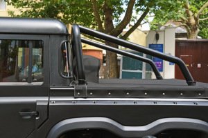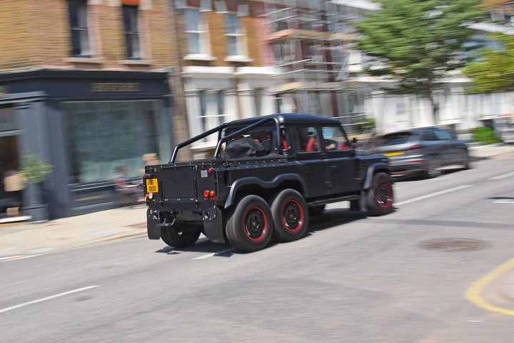 The steering is vague and slow and the car thumps and crashes over the royal borough’s potholes and sunken drain covers. Fairly standard Defender stuff, then. It may not drive with much finesse, but there is no questioning the 6×6’s road presence. In the land of the supercar, this unusual machine turns heads like nothing else.