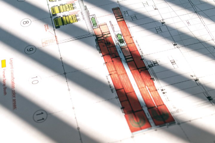 Installation begins with the company’s surveyors identifying the precise location of machinery fixings on the factory floor with a laser positioning tool. The result is an accurate installation template that, if necessary, can be duplicated at another site, possibly on the other side of the world, should the factory need to be relocated.