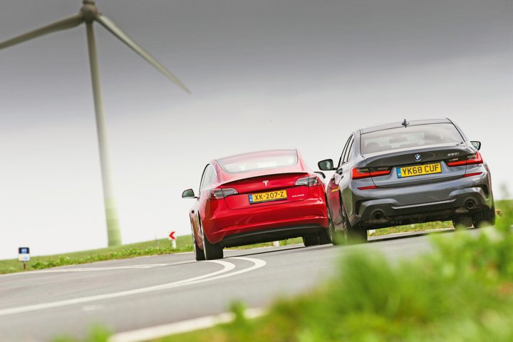 BMW is more lively above 50mph, the Tesla in the city