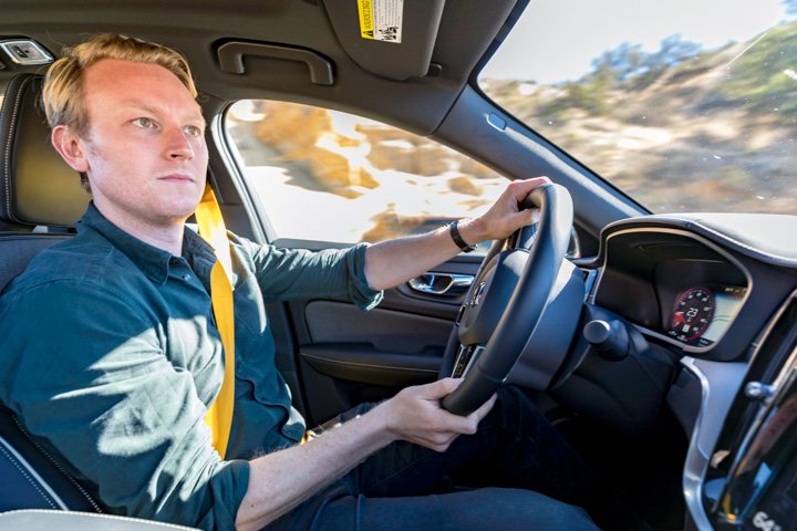 The other half begins with a car that steps off the mark in crisp silence thanks to 28 miles of pure-electric range and then cruises with the permanency and luxurious detachment of something in the class above. It’s that Öhlins witchcraft at work again, although this time supplemented by minimal wind or tyre roar and the high-sided comfort, elegance and security of Volvo’s interior design. Certainly, on those frequent occasions when there are 200 soggy motorway miles between test location and home, the S60 is a car to get road testers squabbling over the keys.