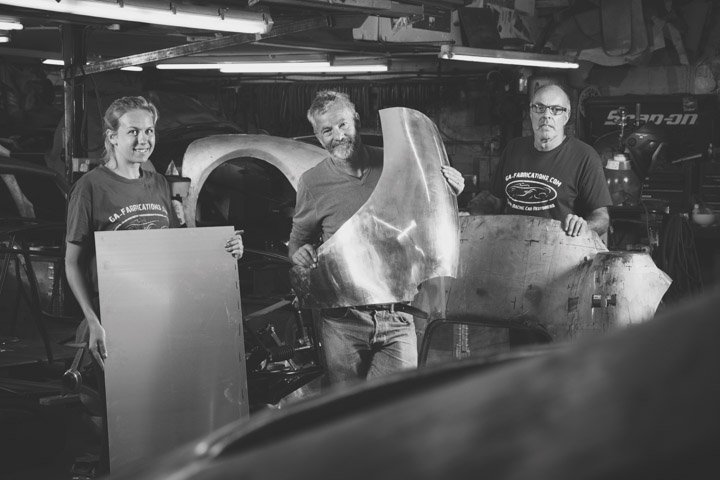 There’s a car in here that’s under wraps and we can’t talk about it because it’s very special. Its body was originally made in Italy, where a different technique is used. Italian artisans use hammers, sandbags and even logs to beat the metal into shape. Any dents and dimples that you end up with have to be hidden with filler. One Cobra in here has an eighth of an inch of filler in it in places due to poor welding and equally poor metal shaping. The goal is to use hardly any filler.